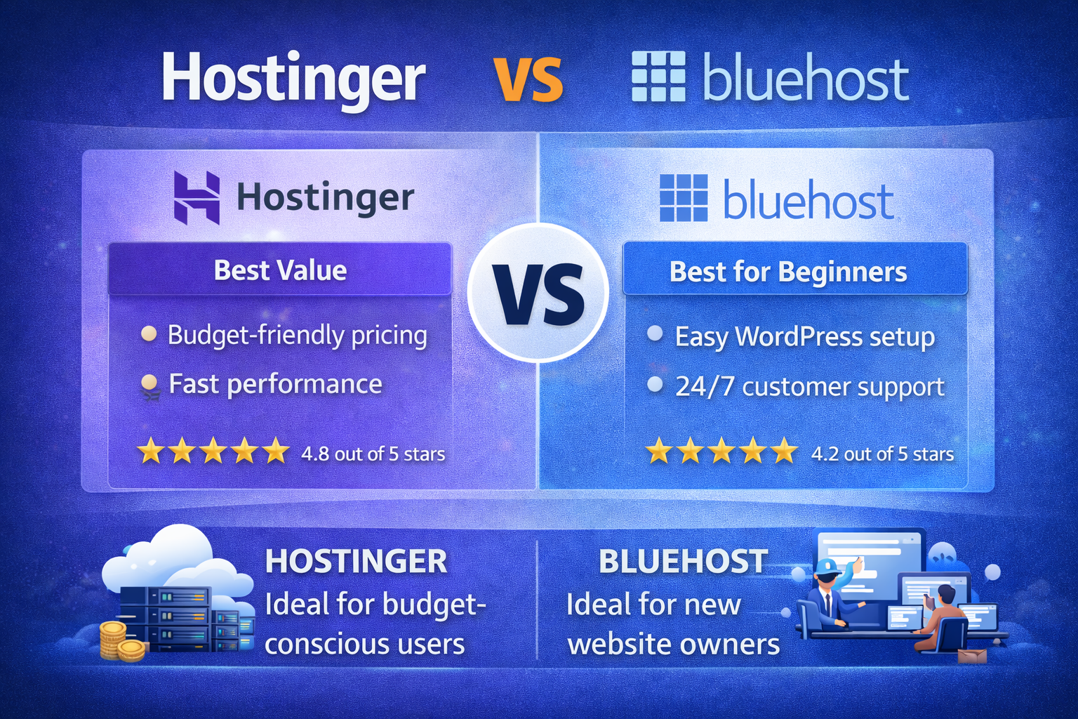 - Hostinger = cheaper upfront, but renewal prices increase