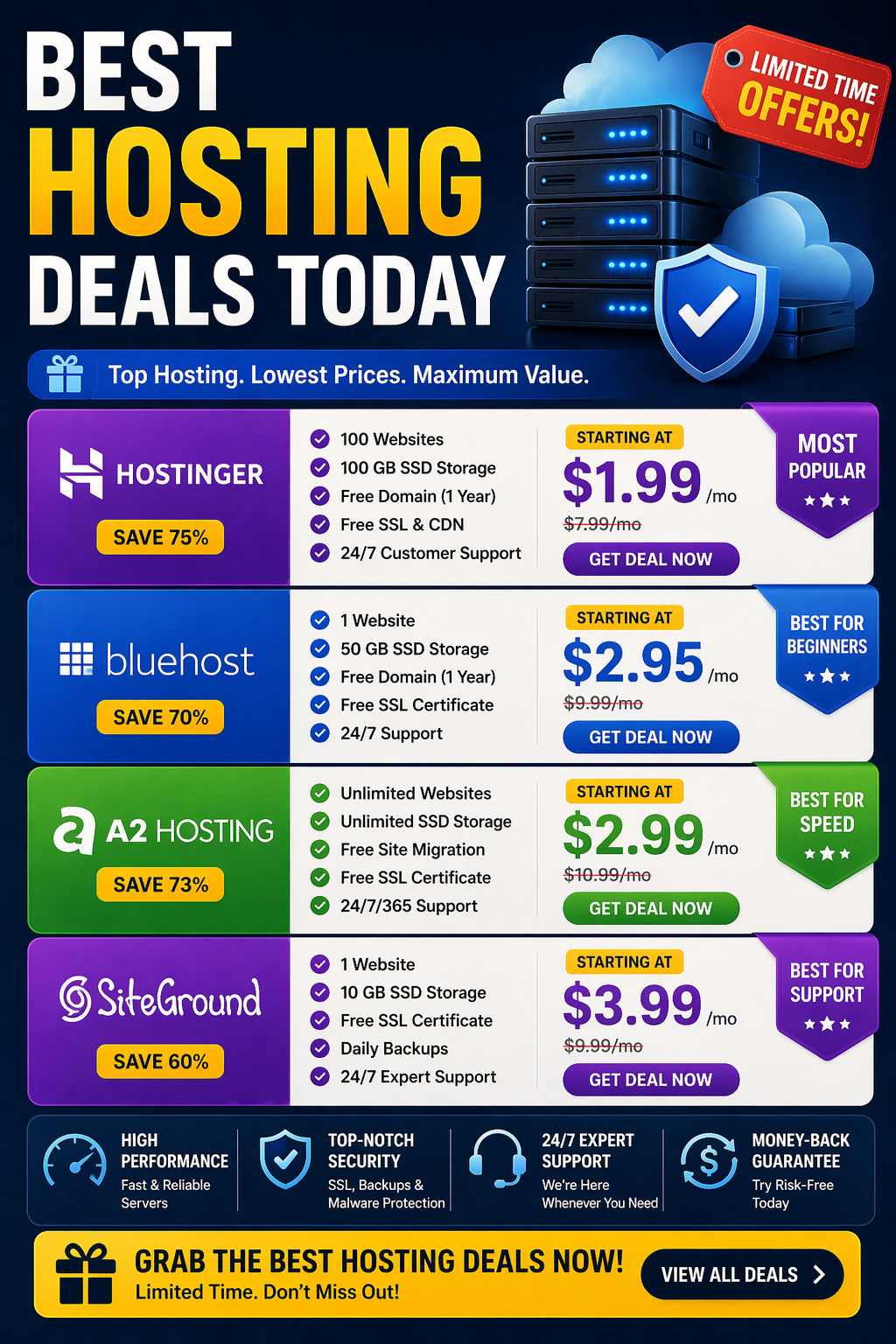 The best hosting deal isn’t just the cheapest option—it’s the one that balances cost, performance, and reliability for your specific needs.
